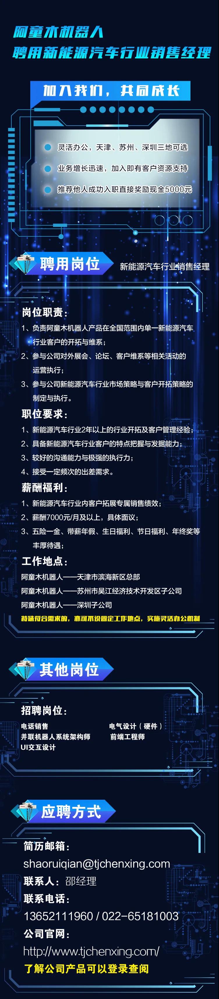 推荐有奖!阿童木机器人诚聘新能源汽车行业销售经理